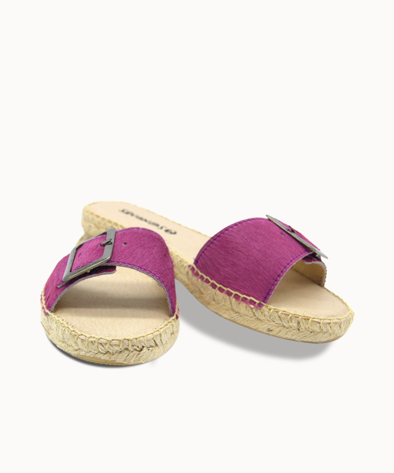 Alpargata plana modelo mora. En esta versión específica se utiliza una piel con pelo para darle un toque salvaje y moderno al diseño.